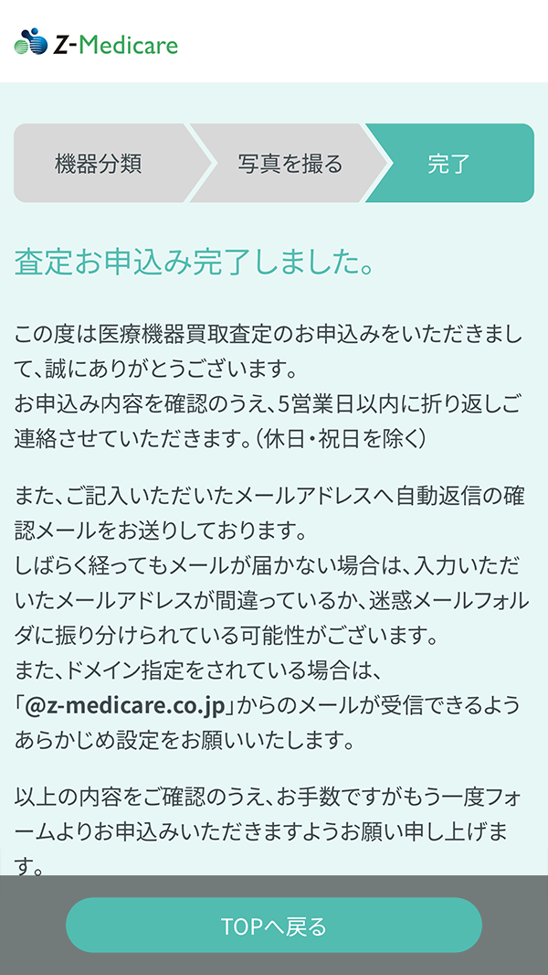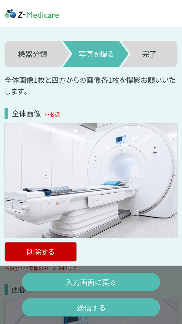 対象機器を、全体・四方の計5枚撮影し、アップロードしてください。アップロードできたら、送信ボタンを押して完了です。